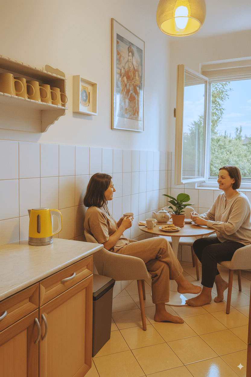 - Jól felszerelt konyha: Kávészünetek, frissítők, vagy akár egy könnyed ebéd – mindez egyszerűen megoldható a helyszínen.